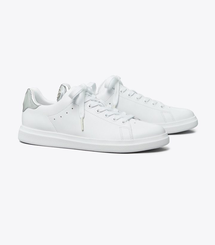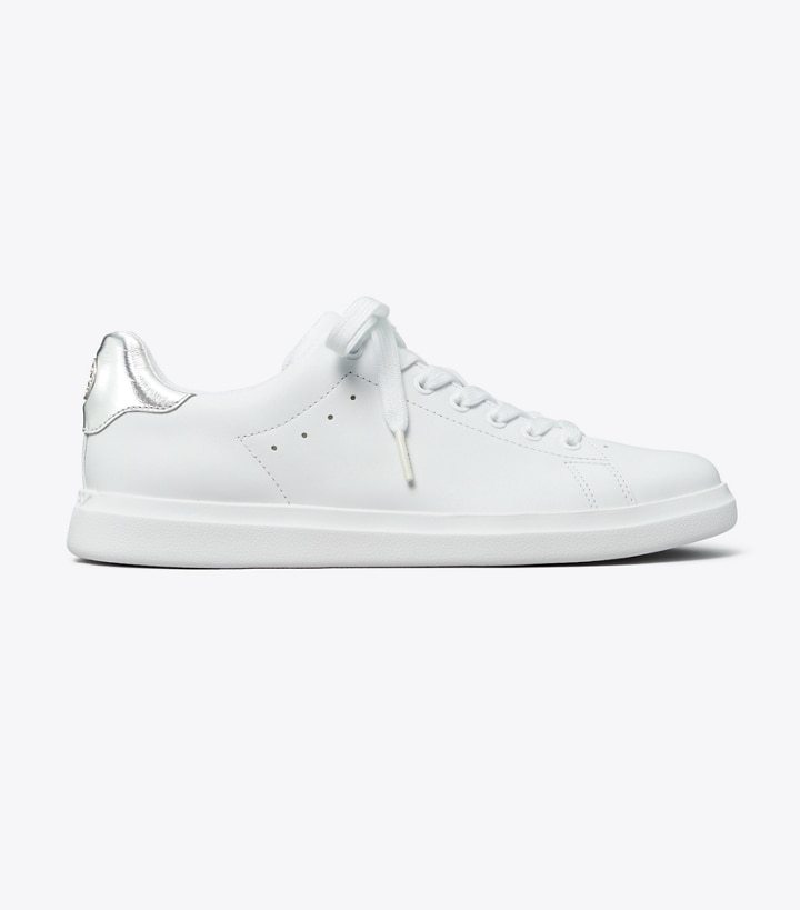 A classic court sneaker, updated for superior comfort, fit and flexibility. The Howell has the look of a Seventies tennis shoe, with our signature design elements. Exceptionally lightweight, the layered sole is made from a soft cushioned midsole and a performance outsole that is extremely flexible, with high-rebound EVA for traction. Our iconic Double T, in plated brass, is embedded into the padded-leather heel tab.