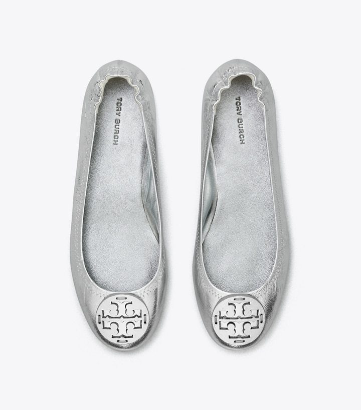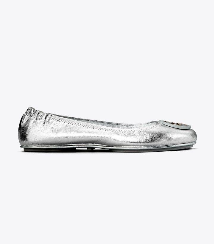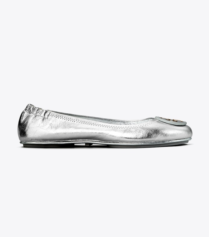 Fold. Pack. Go. Our Minnie Travel Ballet is flexible and lightweight, defined by its unique ability to bend in half. Crafted in metallic leather and detailed with a tonal Double T, the classic silhouette features a cushioned footbed and slip-resistant rubber sole. A stitch-and-turn construction refines the seams and creates a subtle binding around the edge. Easily carry this ultra-comfortable flat in a tote or handbag.